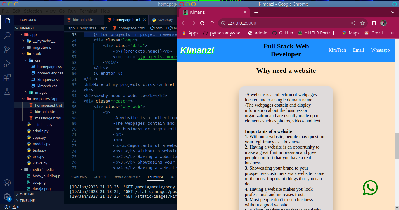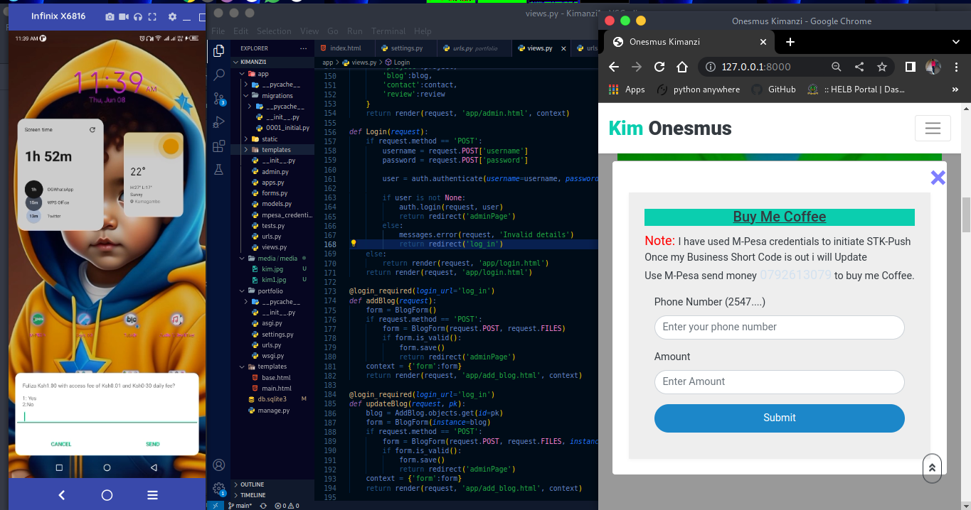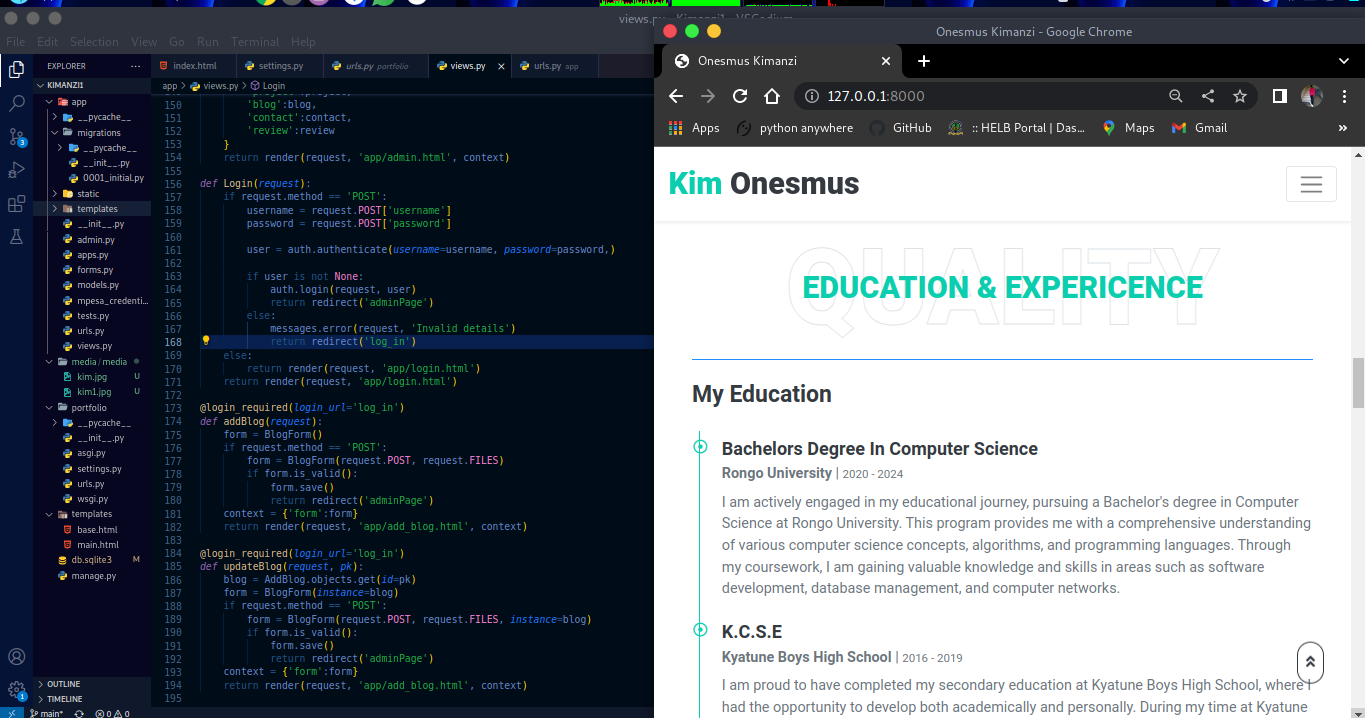 As a Full-Stack Web Developer under my brand KimTech, I have successfully developed and deployed several impactful web applications, including RongoDeals API, Kenya 47 News, and the ShowCase portfolio platform. Leveraging technologies such as Django, Python, HTML, CSS, and JavaScript, I consistently deliver scalable and user-friendly solutions.